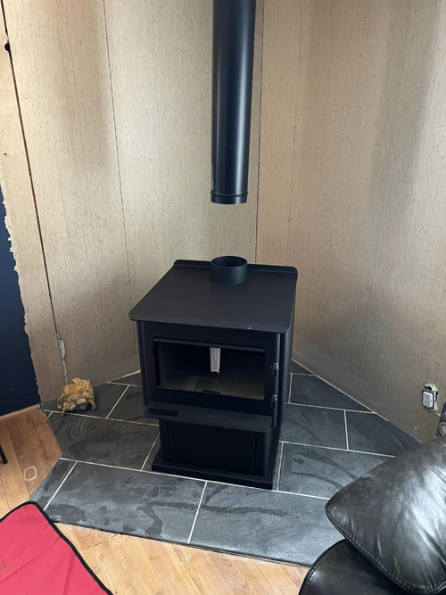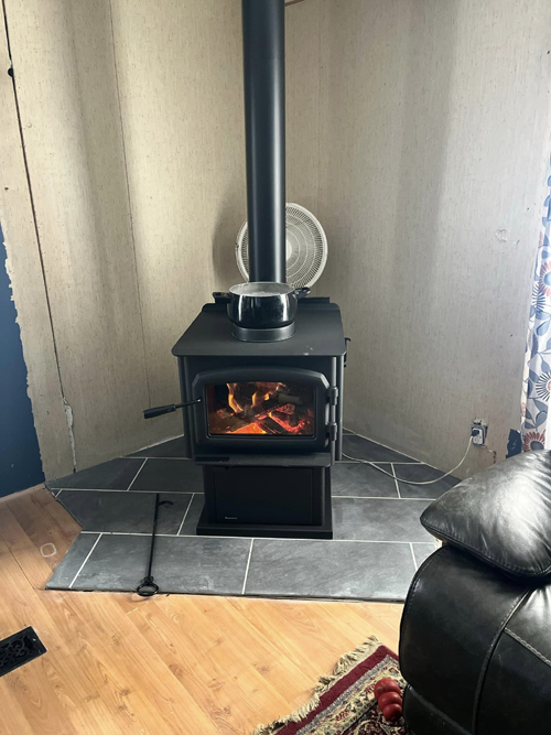 Another satisfied customer enjoys the warmth of their new Regency 2450M woodstove and Class A Duravent system!